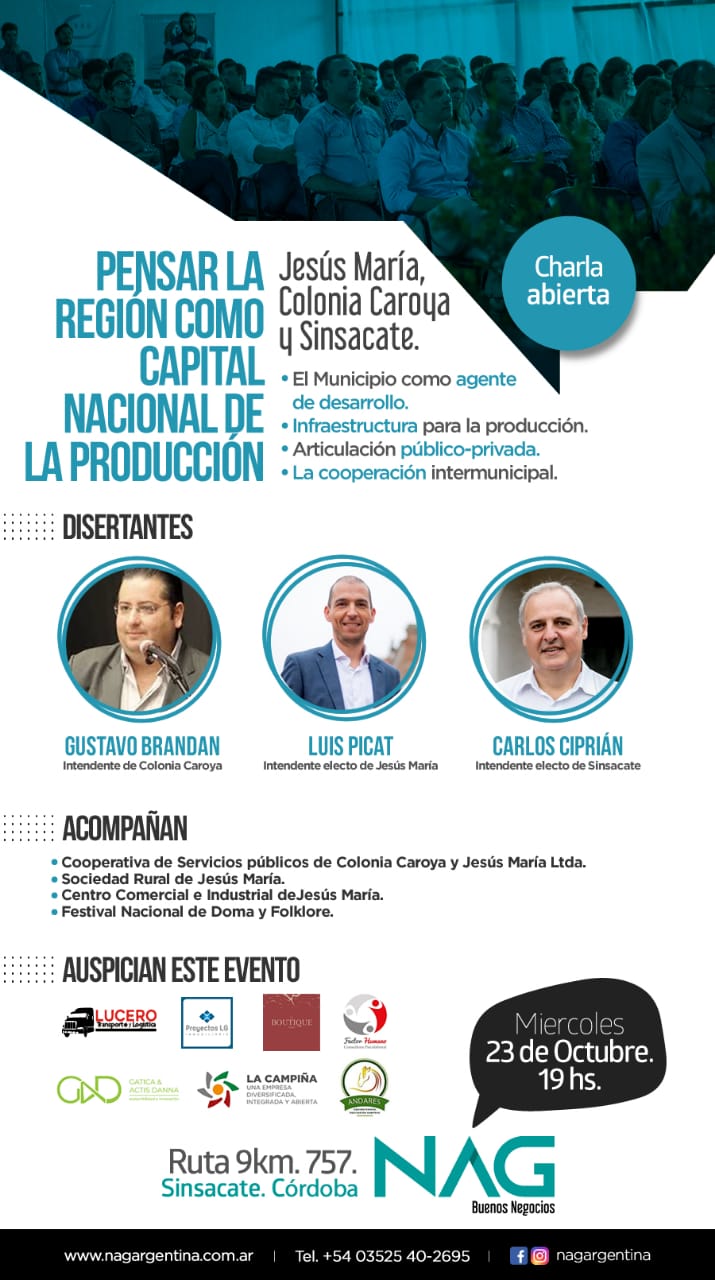 A días de los comicios presidenciales, intendentes electos de Colonia Caroya, Jesús María y Sinsacate participarán de una charla abierta para abordar uno de los ejes sobre los que giraron sus propuestas de campaña: el desarrollo de un polo productivo regional.